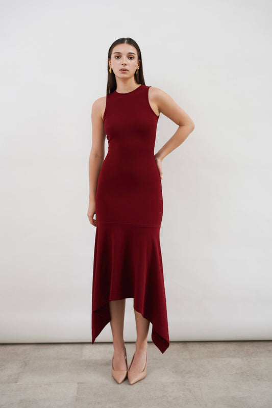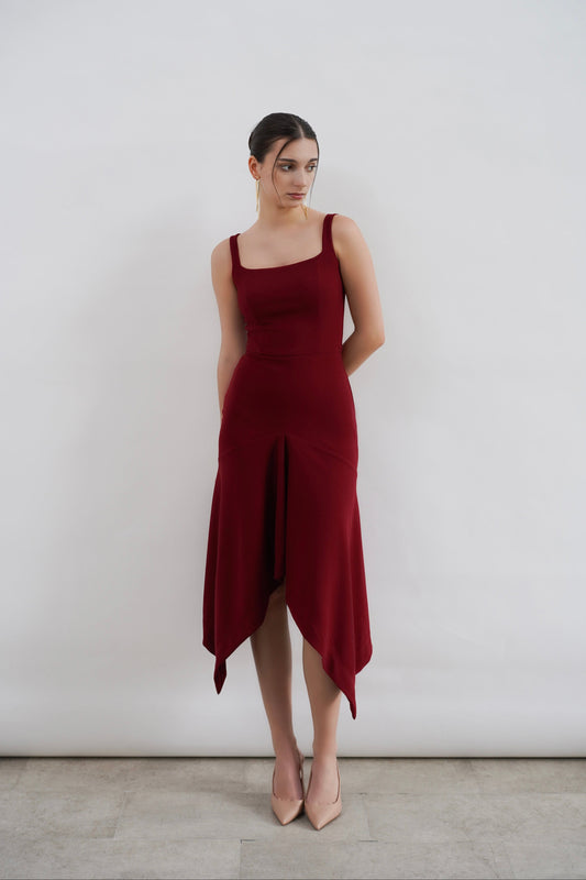 GIULLE - Allure Fitted Midi Dress in Maroon